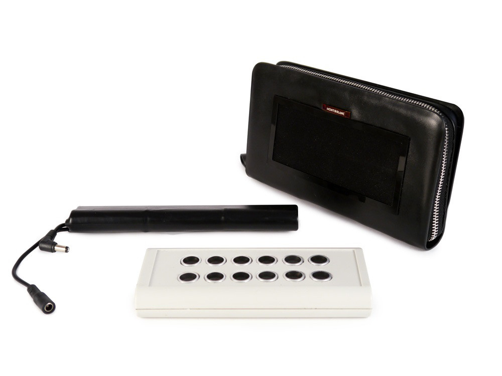 Подавитель выполнен в виде роскошной кожаной барсетки фирмы Montblanc, солидно смотрится на столе во время деловых переговоров, подчеркивая статус владельца. В подавитель также встроена батарея на 3600. А/ч, позволяющая гаджету работать в автономном режиме до 10 часов.