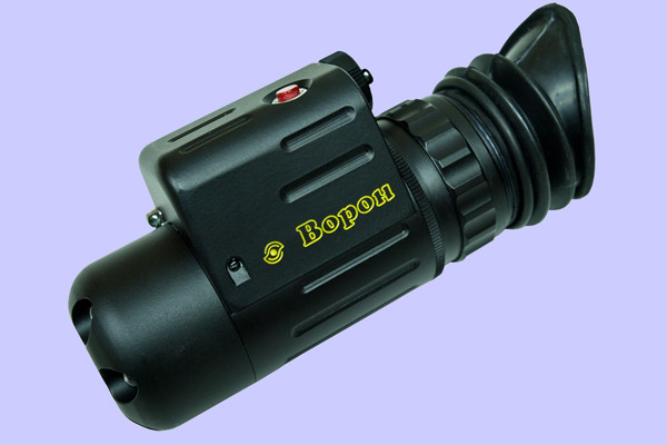 "ВОРОН" помещен в прочный и удобный корпус из легких алюминиевых сплавов с кистевым ремнем и мягким резиновым наглазником.