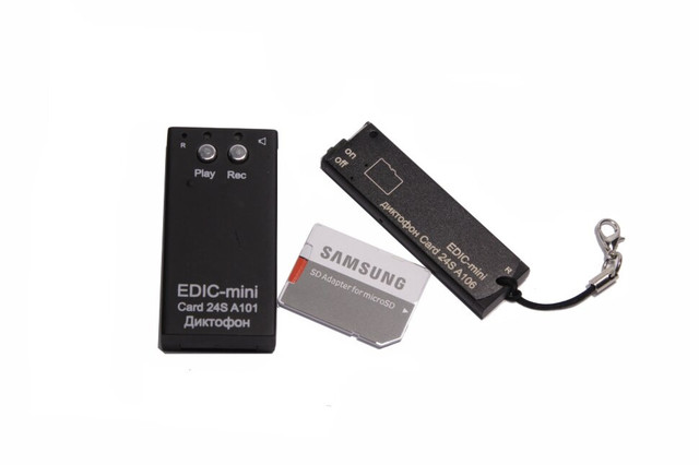 Диктофон Edic-mini Card24S A106 - самый маденький диктофон семейства. Главное достоинство А106-это качество записи, в диктофоне 2 встроенных цифровых MEMS микрофона, позволяют производить запись в стерео формате в качестве 24 бита 32 кГц, в максимально чистом звуковом формате wav. Как и в большинстве наших диктофонов, записи сделанные на Card24S A106 снабжены цифровыми маркерами подлинности.